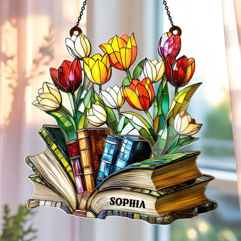 The Storybook Bloom - Personalized Window Hanging Suncatcher - Gift For Her, Book Lovers | HH01