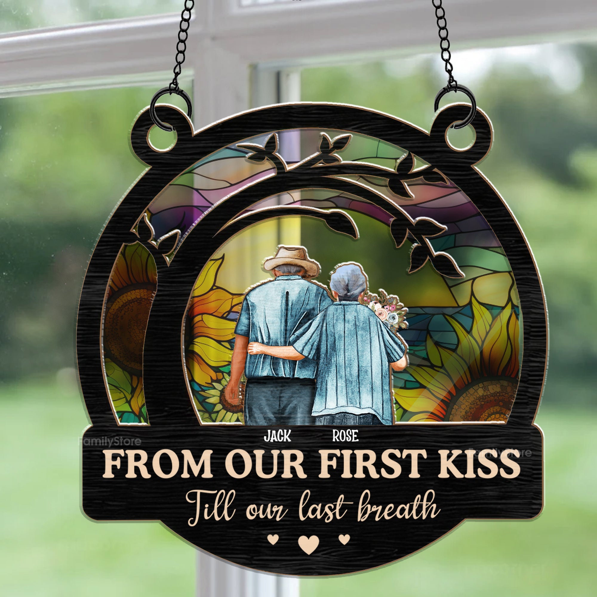 From Our First Kiss Old Couple - Personalized Window Hanging Window Hanging Suncatcher Ornament - CL29