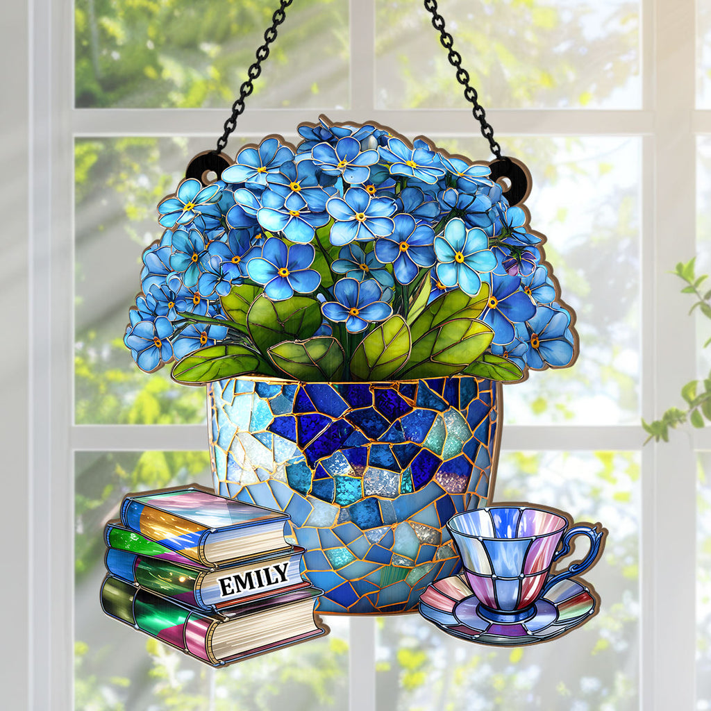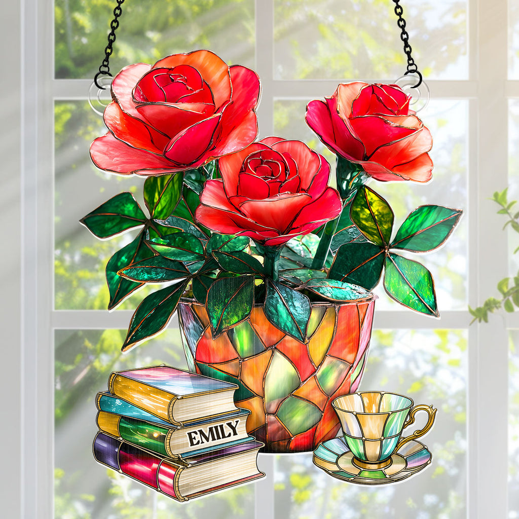 Vintage Flower Book - Personalized Window Hanging Suncatcher - Gift For Her, Readers | HH01