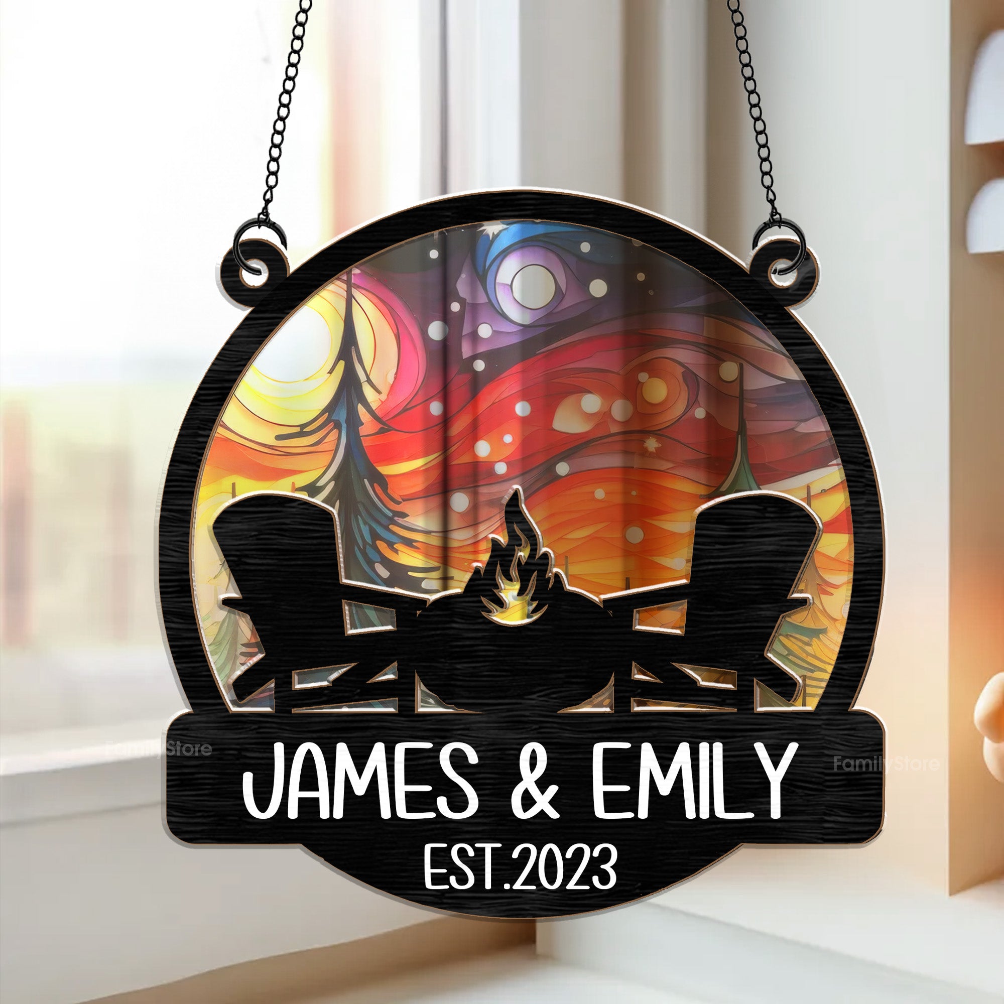 Camping Couple Chair - Gift For Camping Lovers - Personalized Window Hanging Window Hanging Suncatcher Ornament - NA94