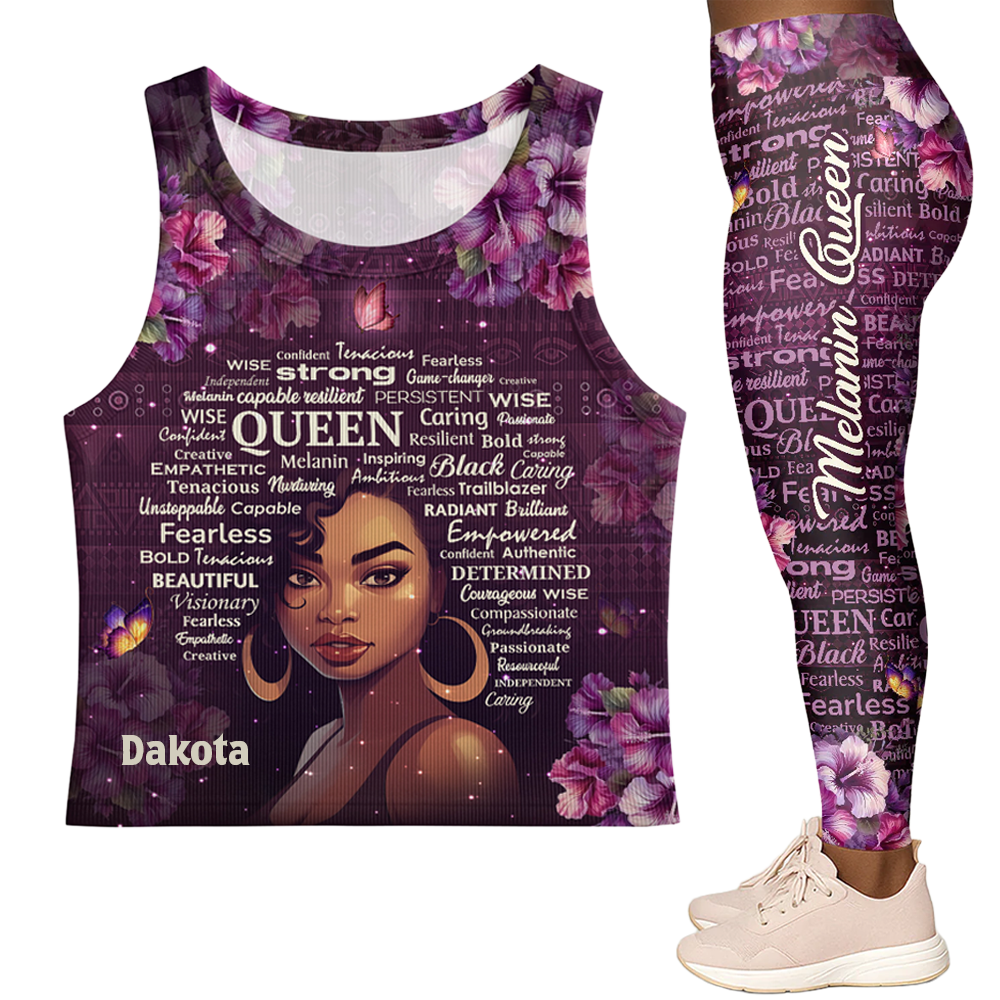 Purple Floral Black Queen - Personalized Leggings & Crop Tank - Gift For Women HD95