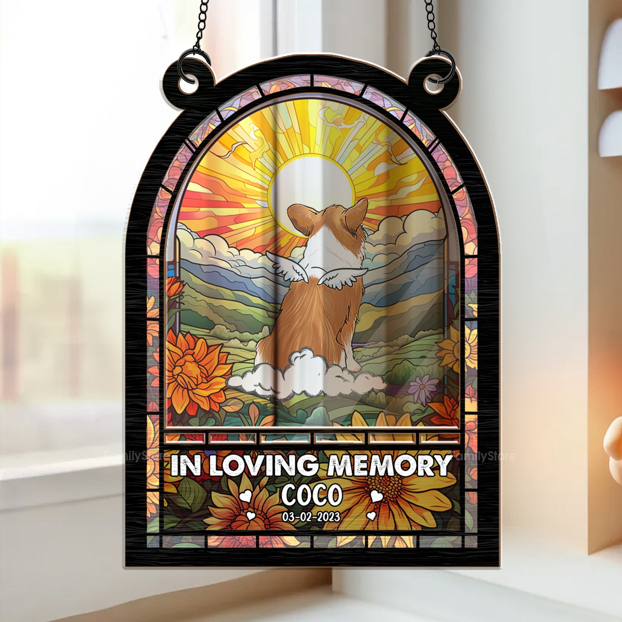 Dog Memorial With Jesus - Personalized Window Hanging Window Hanging Suncatcher Ornament - CLP06 PT