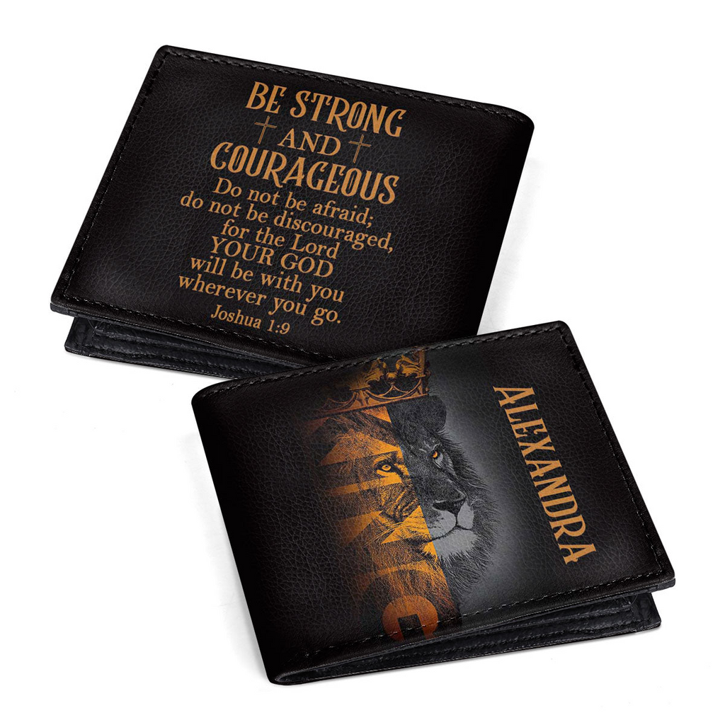 Be Strong and Courageous Joshua 1:9 Bible Verse - Personalized Folded Wallet For Men