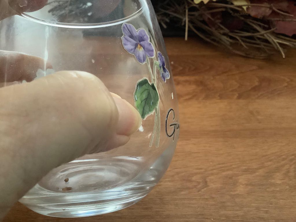 I purchased several of these glasses for friends nd one for myself, and we all love them. However, unfortunately someone put mine in the dishwasher without my knowing it. Now some of the decoration is peeling of, and I don’t know how ro restick it. Any help?