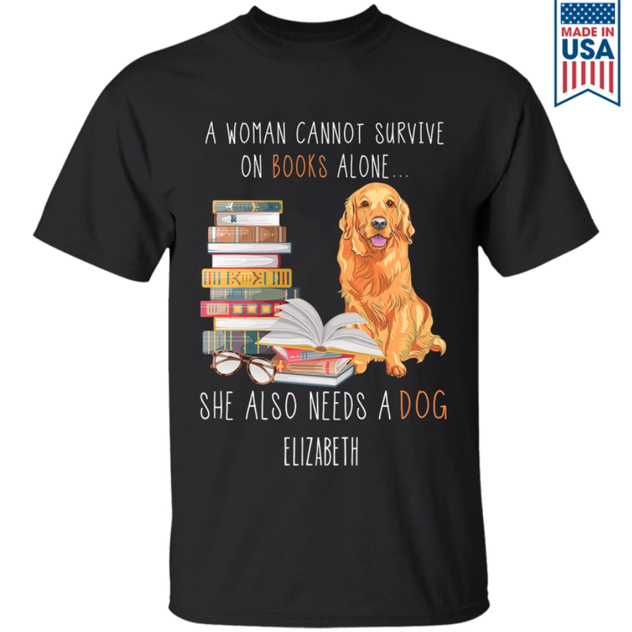 A Woman Cannot Survive On Books Alone She Also Needs A Dog - Personalized T-Shirt - Gift For Book Lover , Dog Owner HH01