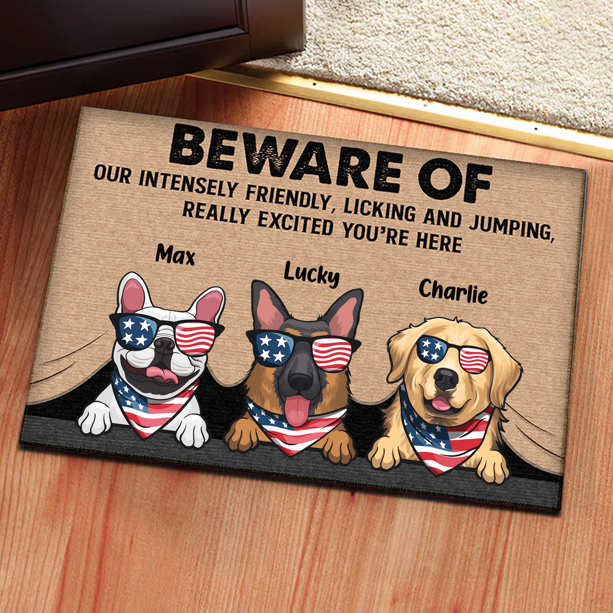 Be Aware Of Our Intensely Licking Pets - Gift For Pet Lovers - Personalized Door Mat