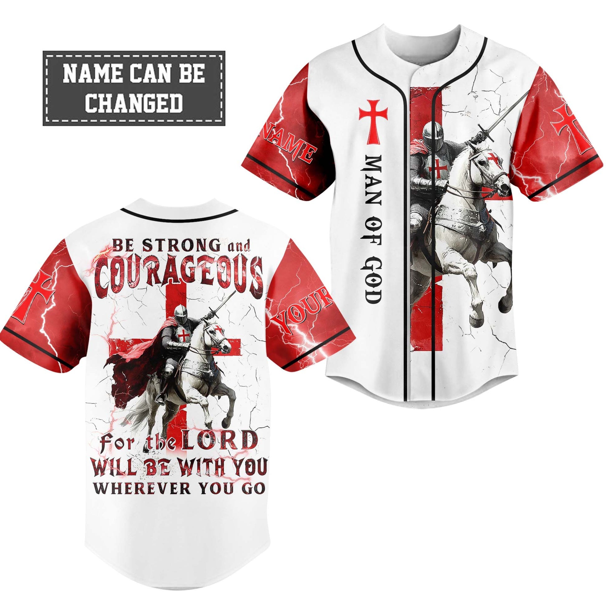 Be Strong And Courageous Custom Name Baseball Jersey - Christant Gift For Him