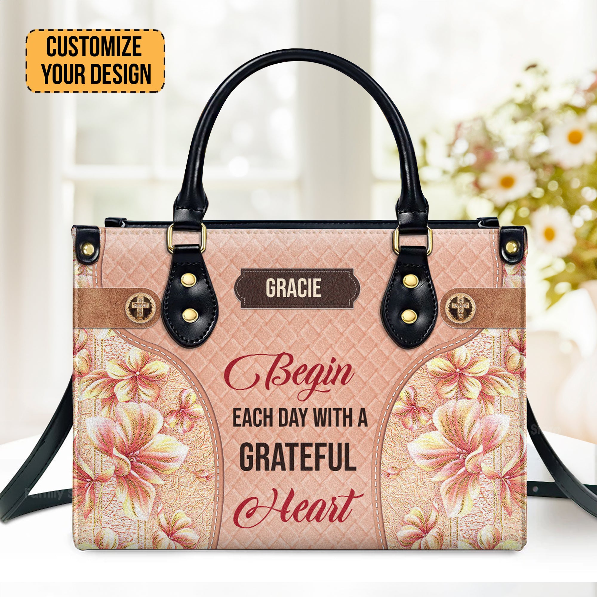 Begin Each Day With A Grateful Heart - Beautiful Personalized Leather Handbag - AT4081330