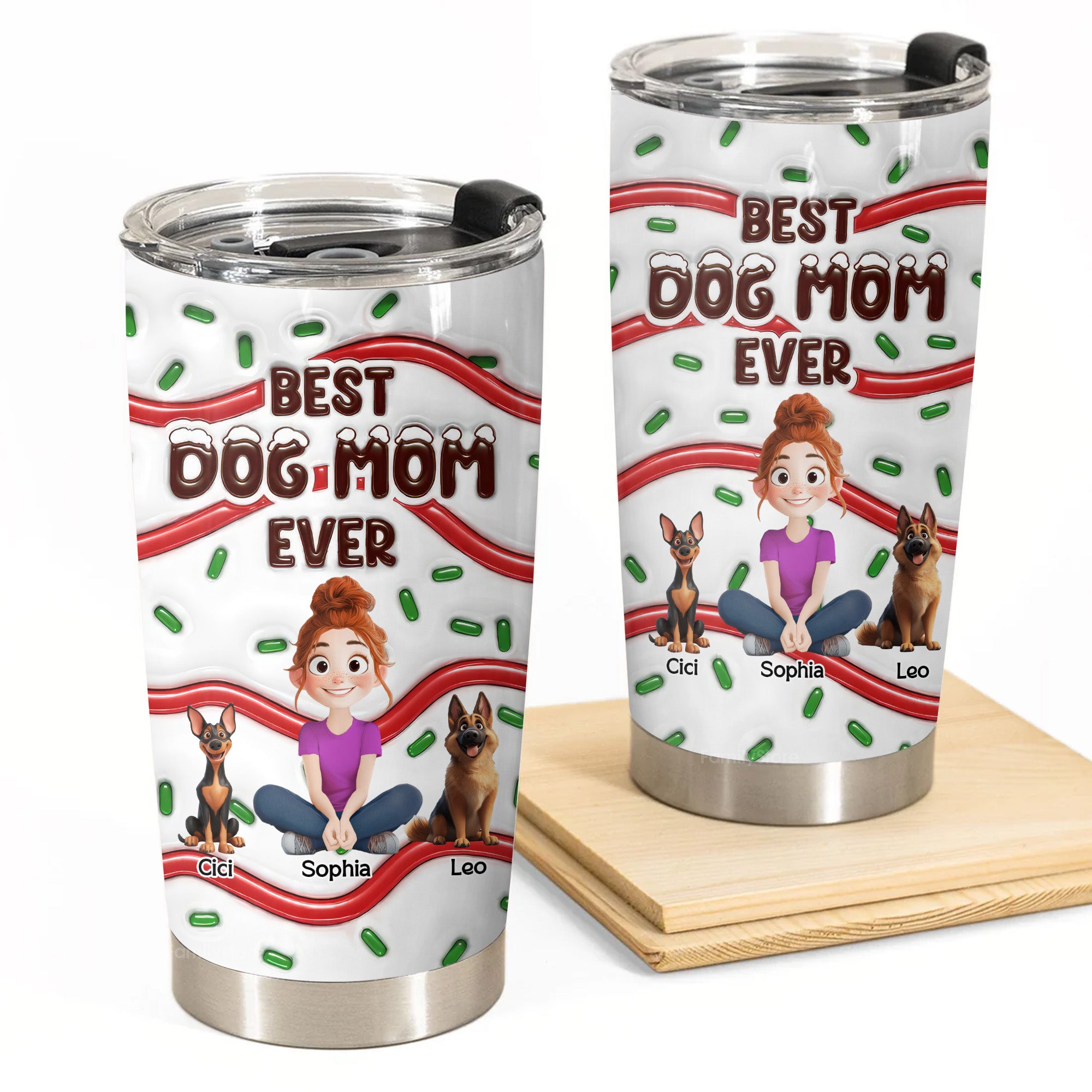 Best Dog Mom Ever Cream Cake Pattern 3D Inflated Effect Cartoon Dog - Personalized Tumbler Cup - Gift for Pet Owners, Pet Lovers, Dog Mom | CLP15 NH96