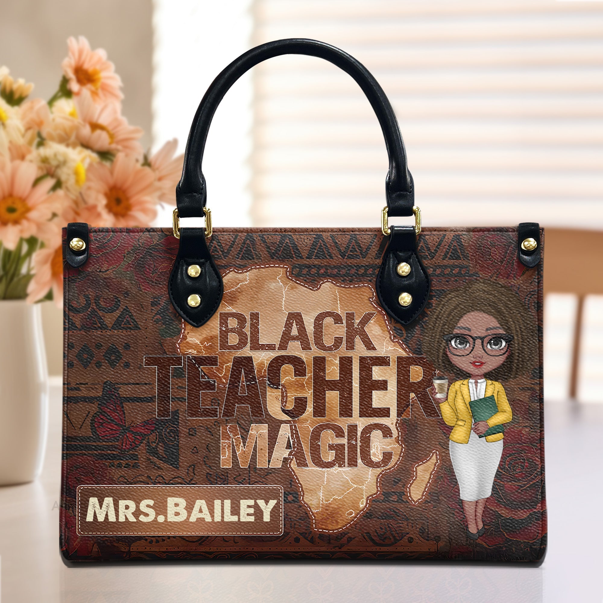 Black Teacher Magic Afro map - Personalized Custom Leather Bag - Appreciation Gift For Teacher | CLTC01 HD95