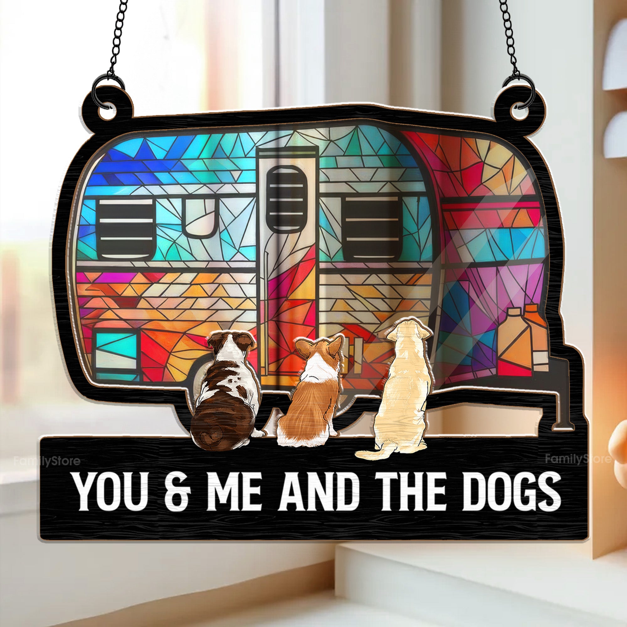 Camping Home Is Where We Park It, You And Me And The Dogs - Gift For Camping Lovers - Personalized Window Hanging Window Hanging Suncatcher Ornament - CLP06 NA94