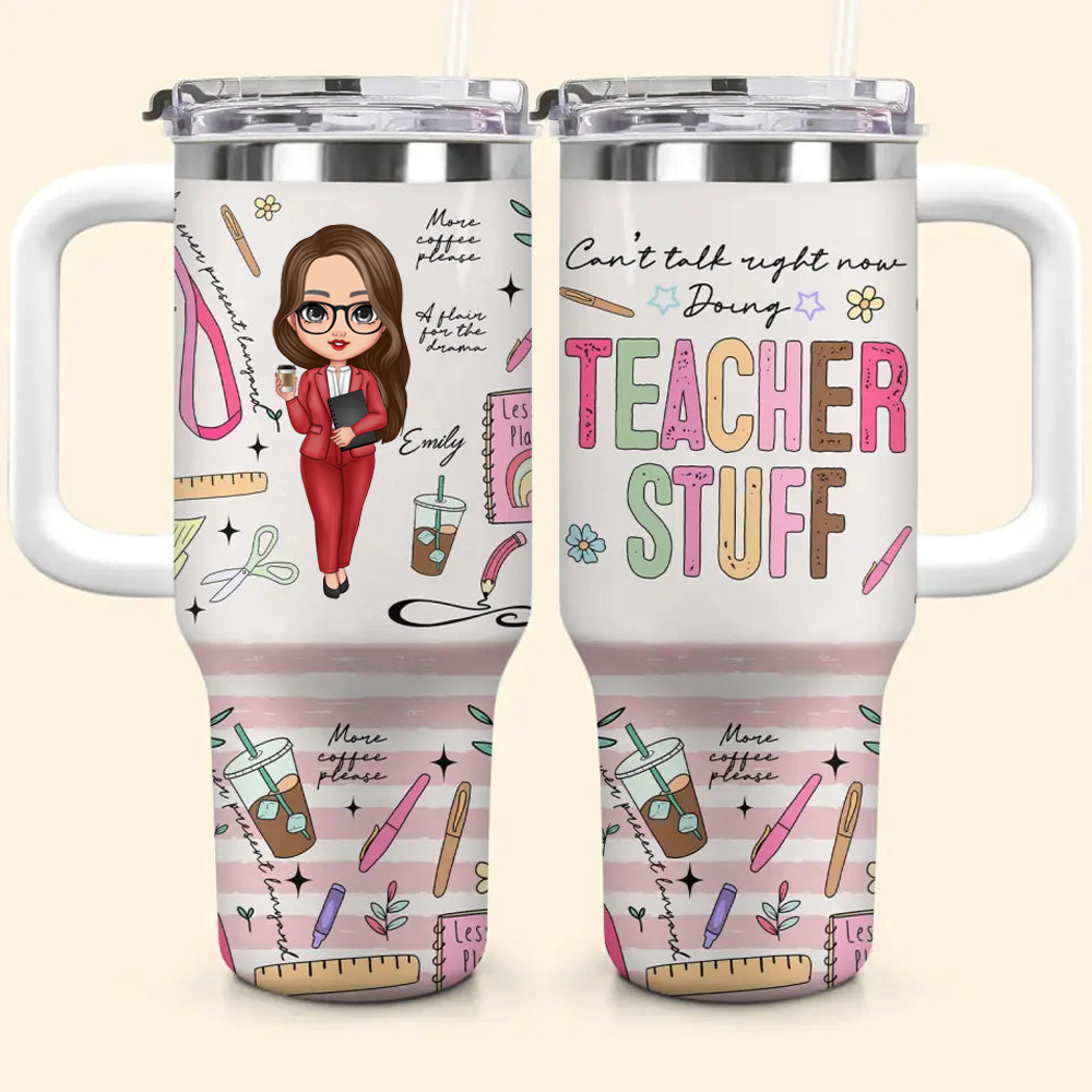 Can't Talk Right Now Doing Teacher Stuff - Personalized 40oz Tumbler Cup With Straw - Gift For Teacher | CLTC01 HN02