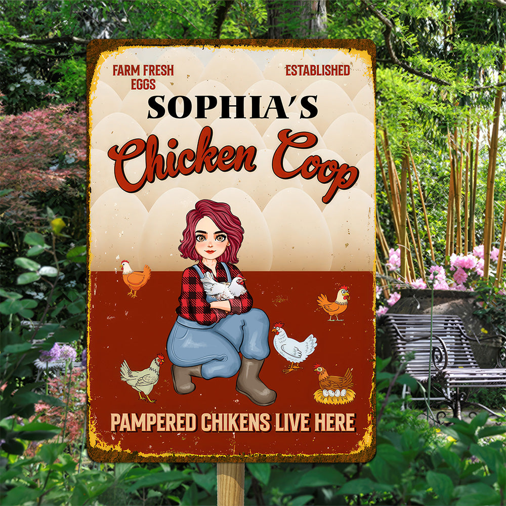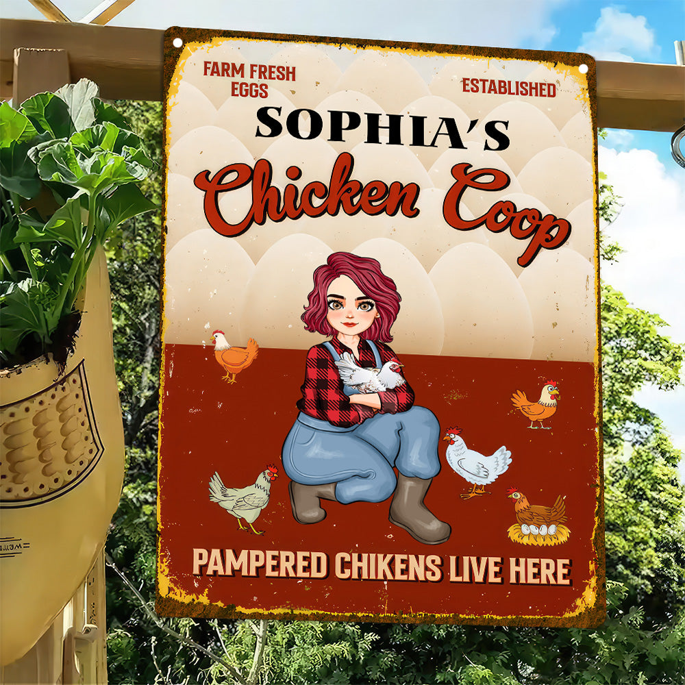 Chicken Coop Pampered Chickens Live Here - Personalized Metal Sign - Funny Gifts For Farmer | GR17 NH96