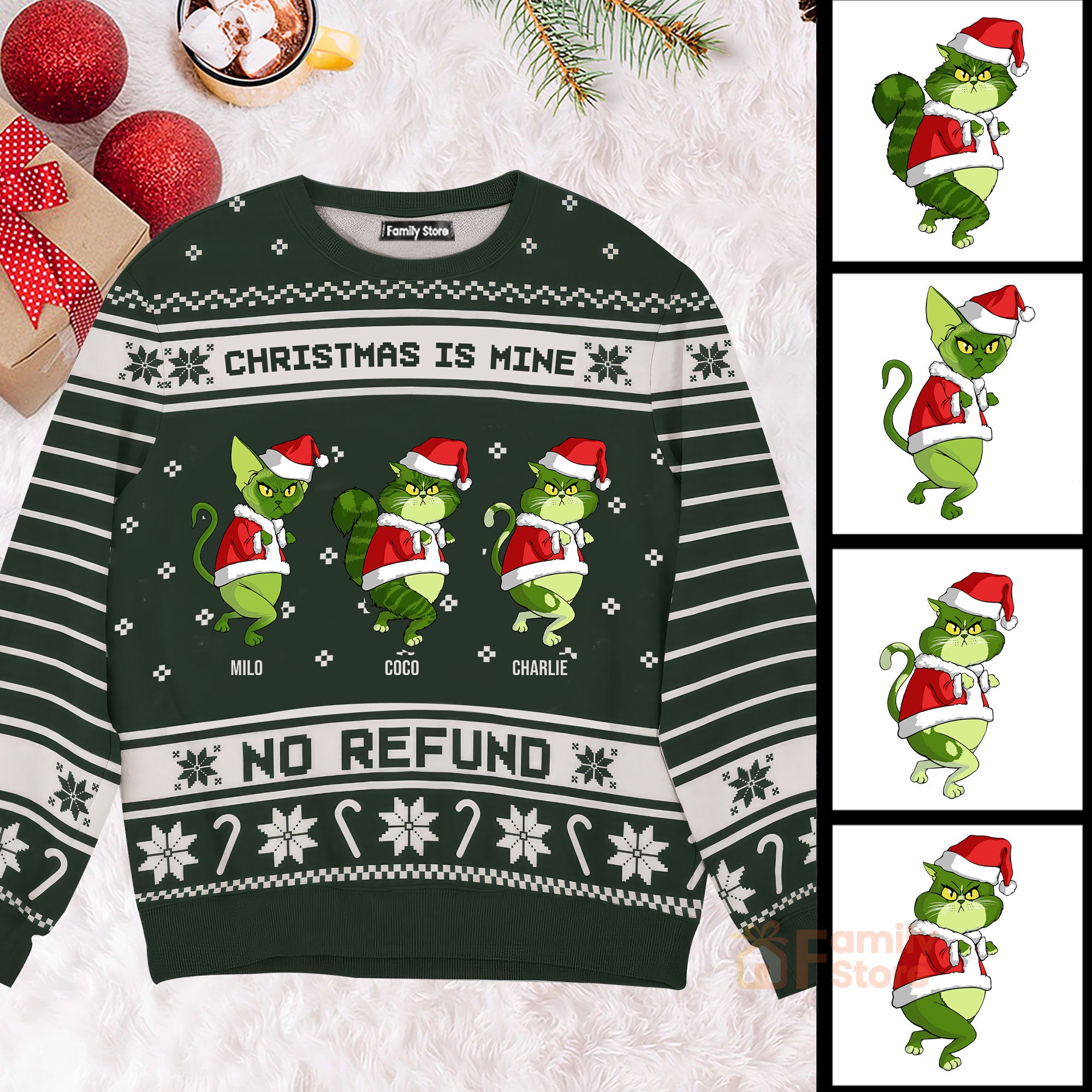 Christmas Is Mine, No Refund Grinchy Cat - Gift For Christmas - Personalized Ugly Sweatshirt - CL16 NH96