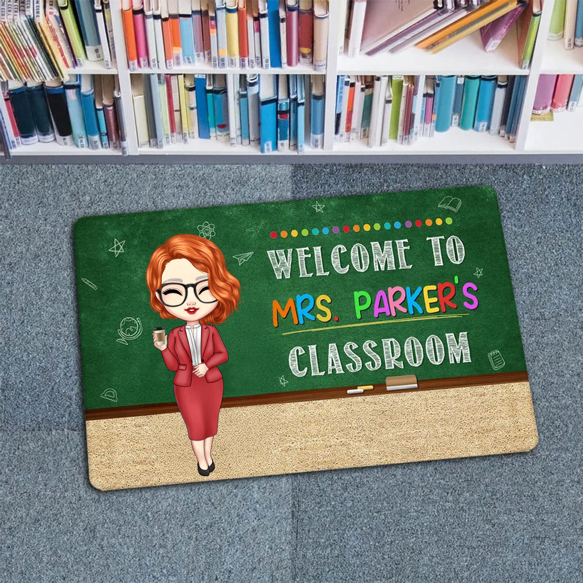 • Classroom Green Board Welcome To Classroom Teacher - Personalized Doormat | CLTC01
