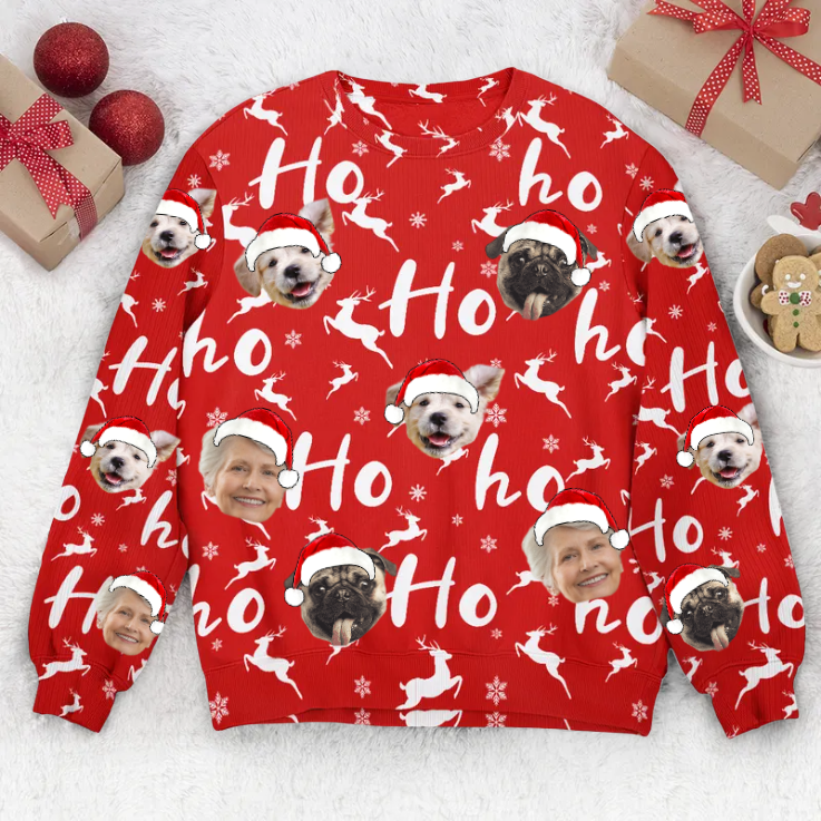 Custom Photo Christmas Family Silly Hohoho - Dog & Cat Personalized Ugly Sweatshirt - Christmas Gift For Pet Owners, Pet Lovers