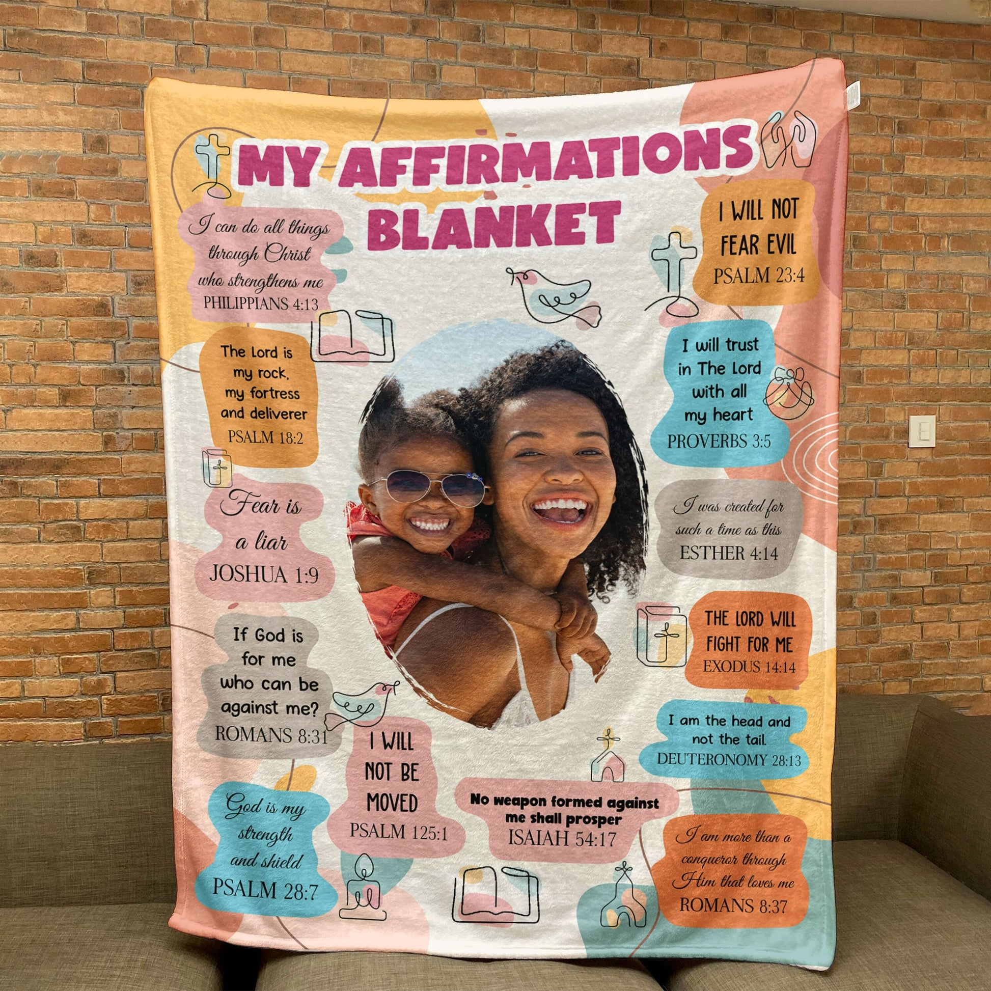 Custom Photo Christian Bible Verse Affirmations - Personalized Blanket - Gift For Daughter, Son | HD95
