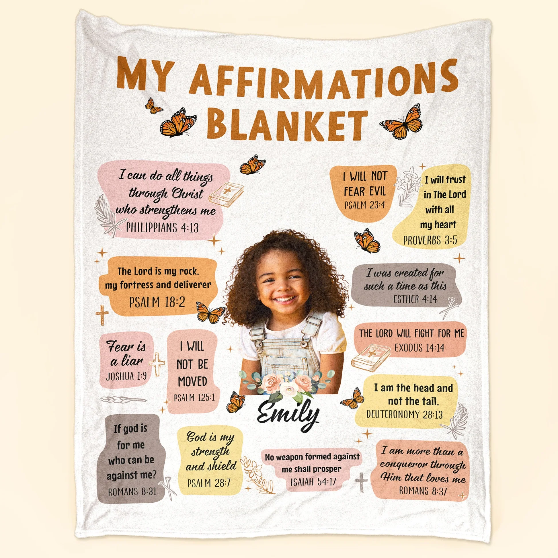 • Custom Photo Christian Bible Verse Affirmations - Personalized Blanket - Gift For Girls, Boys | HD95