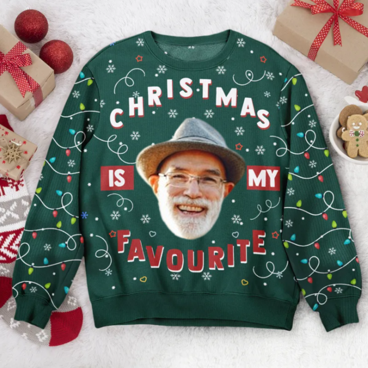 Custom Photo Christmas Is My Favourite Led Light - Christmas Gift for Dad, Grandpa, Husband - Personalized Ugly Sweatshirt