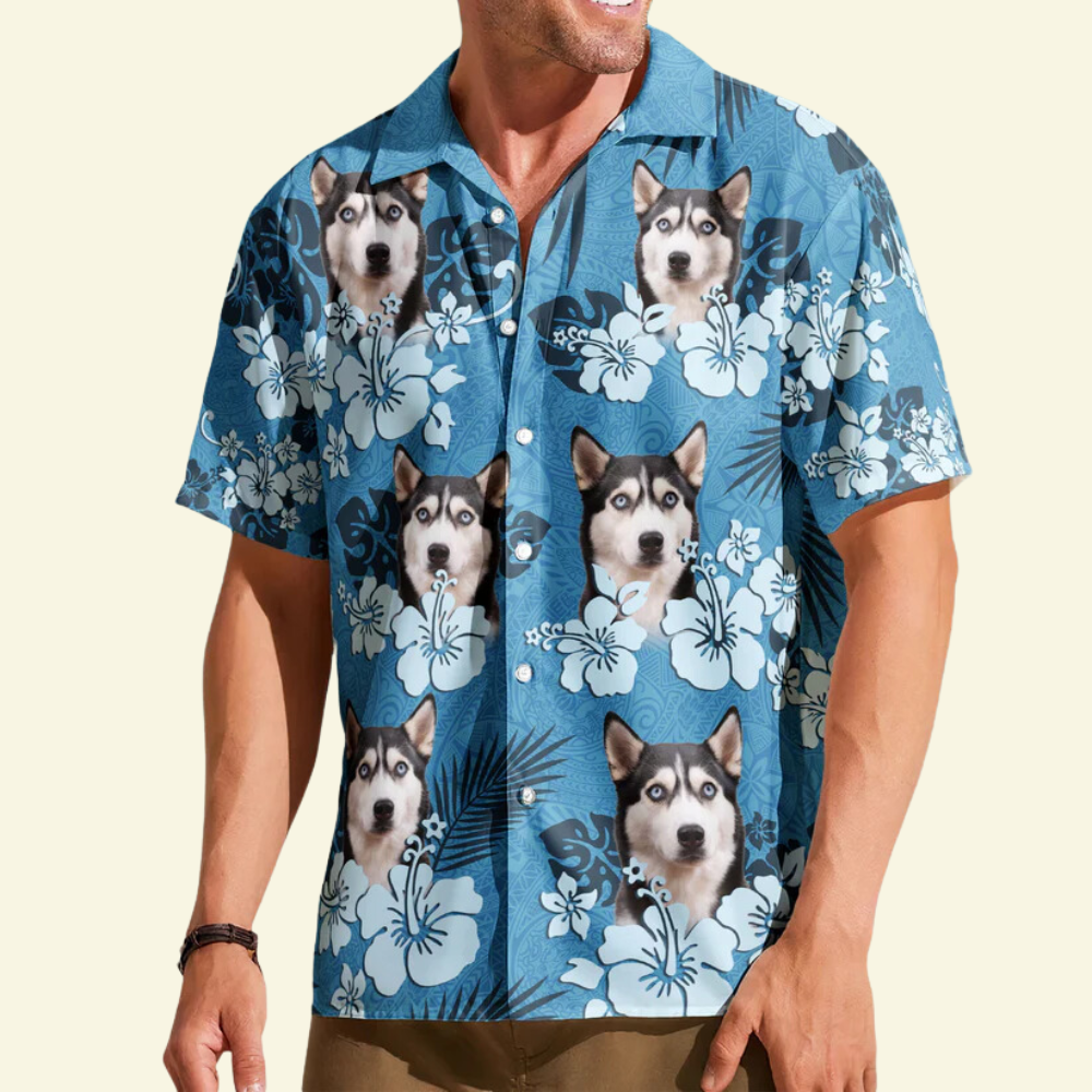 • Custom Photo Face Funny Photo Tropical Hibiscus - Gift For Dog Lovers - Personalized Hawaiian Shirt
