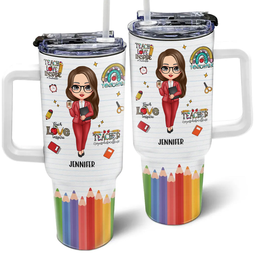 Custom Teacher Life Rainbow Pencil Design - Personalized 40oz Tumbler | CLTC01 TD118