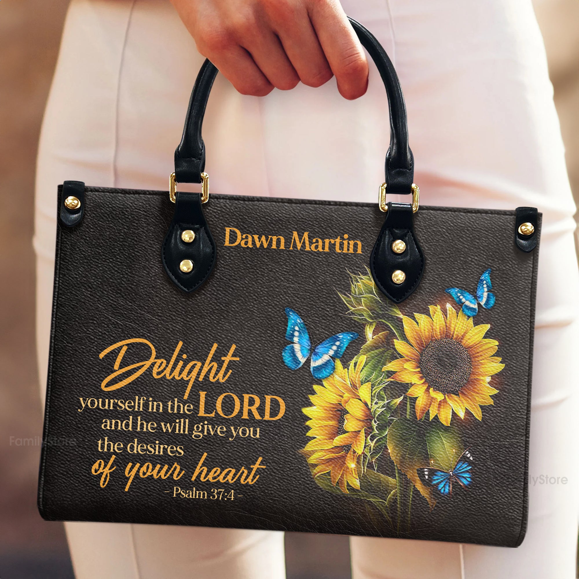 Delight Yourself In The Lord - Thoughtful Gift For Christians - Personalized Leather Handbag With Handle - AT4080737