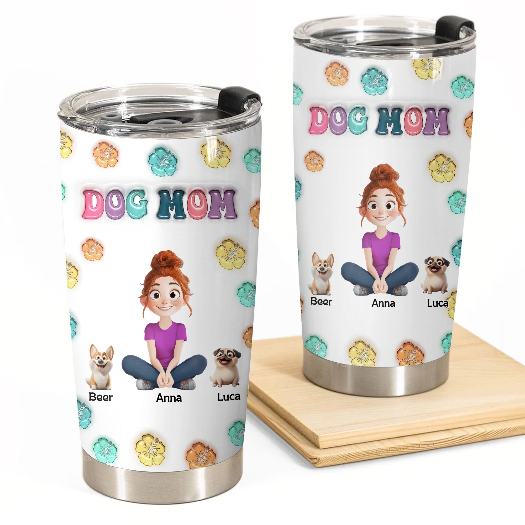 Dog Mom Floral 3D Inflated Effect Cartoon Dog - Personalized Tumbler Cup - Gift for Pet Owners, Pet Lovers, Dog Mom | CLP15 NH96