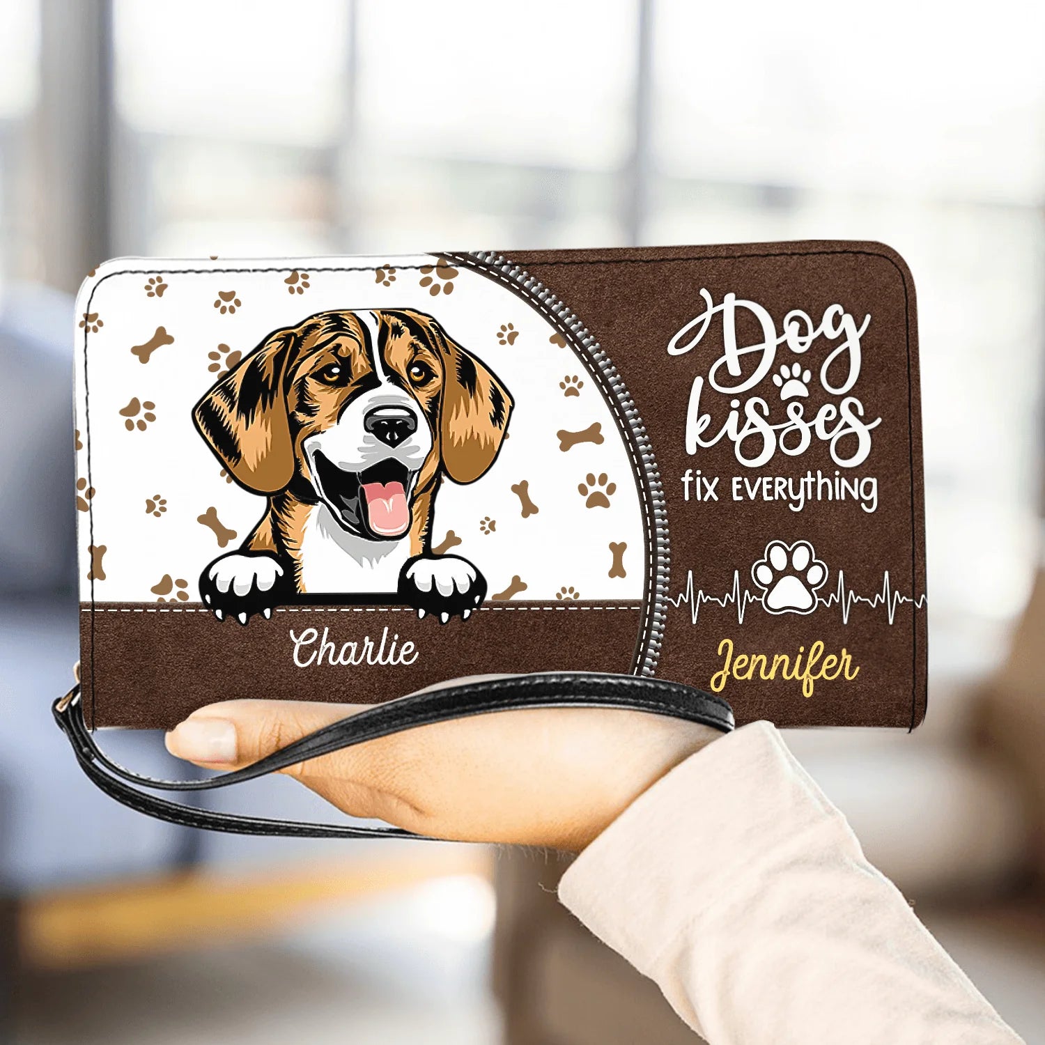 Dogs Make Lives Whole - Personalized Leather Long Wallet - Gift for Dog Lovers, Dog Mom | CLP13