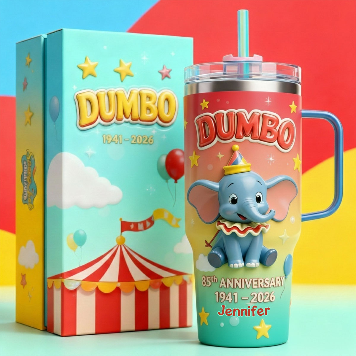 DSNY Flying Elephant 85th Anniversary - Personalized Tumbler Cup With Straw - Gift For Movie Fans | NL122