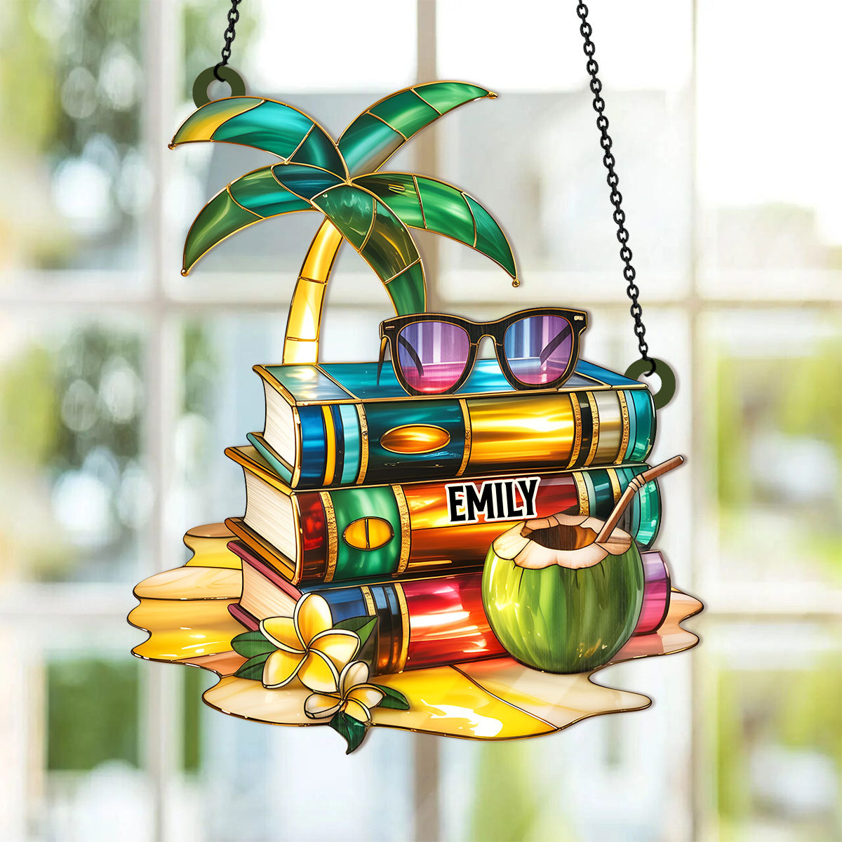 Escape Into Books and Beaches - Personalized Window Hanging Suncatcher