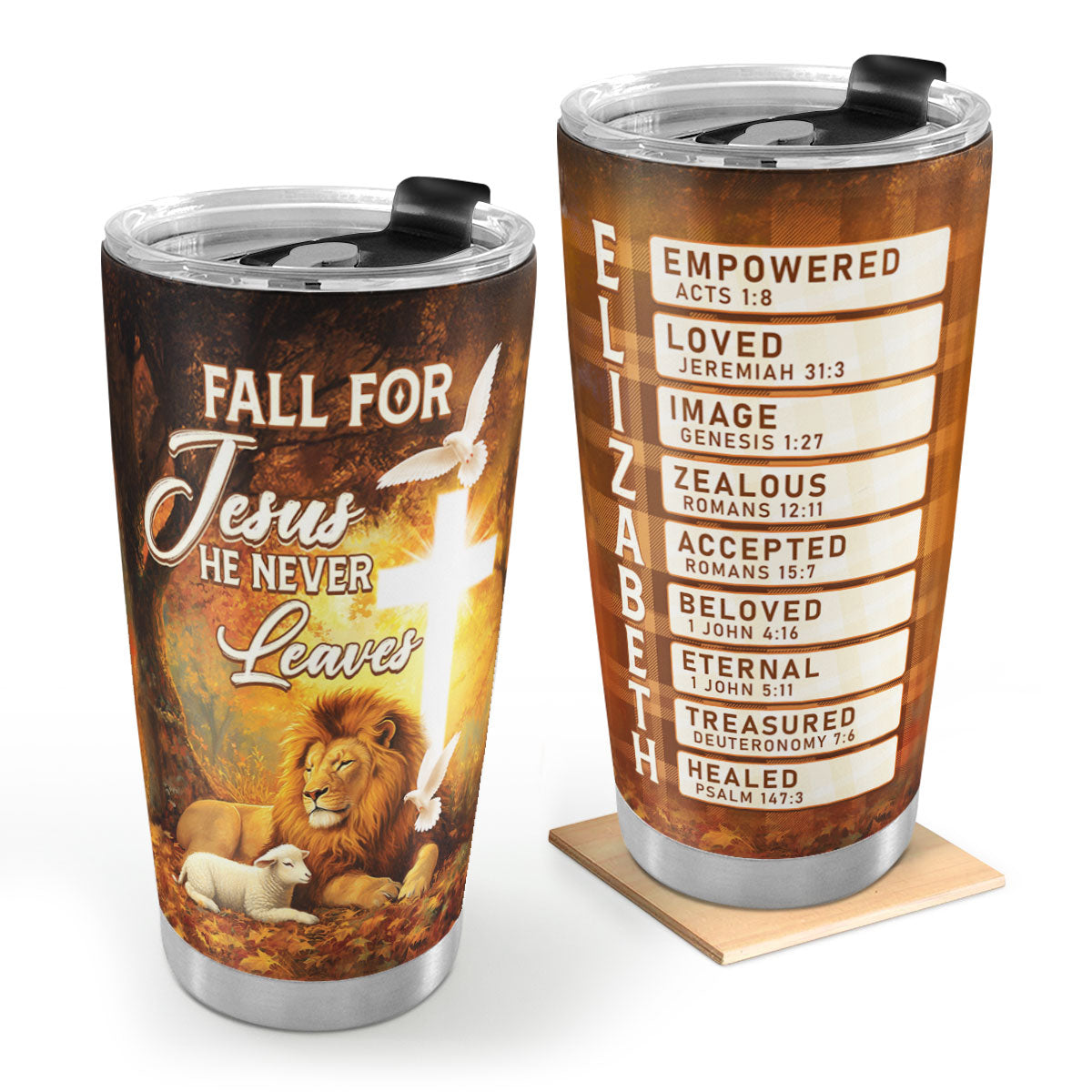 Fall For Jesus He Never Leaves - Personalized Stainless Steel Tumbler TD118