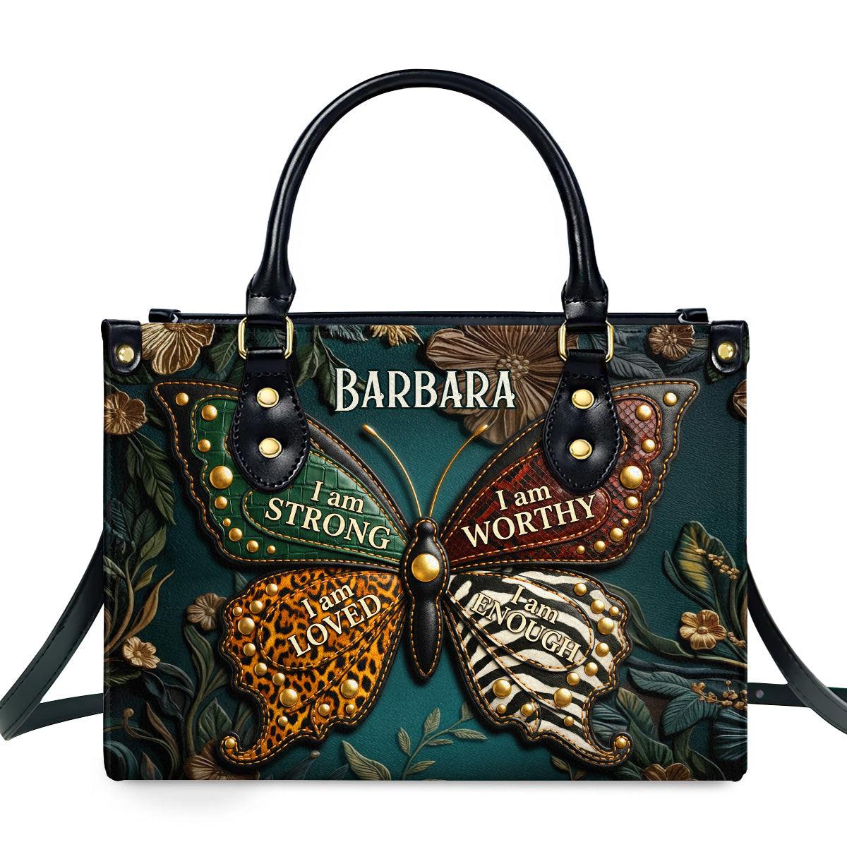 Floral Butterfly Empowerment - Personalized Leather Bag - Gift For Mom, Grandma