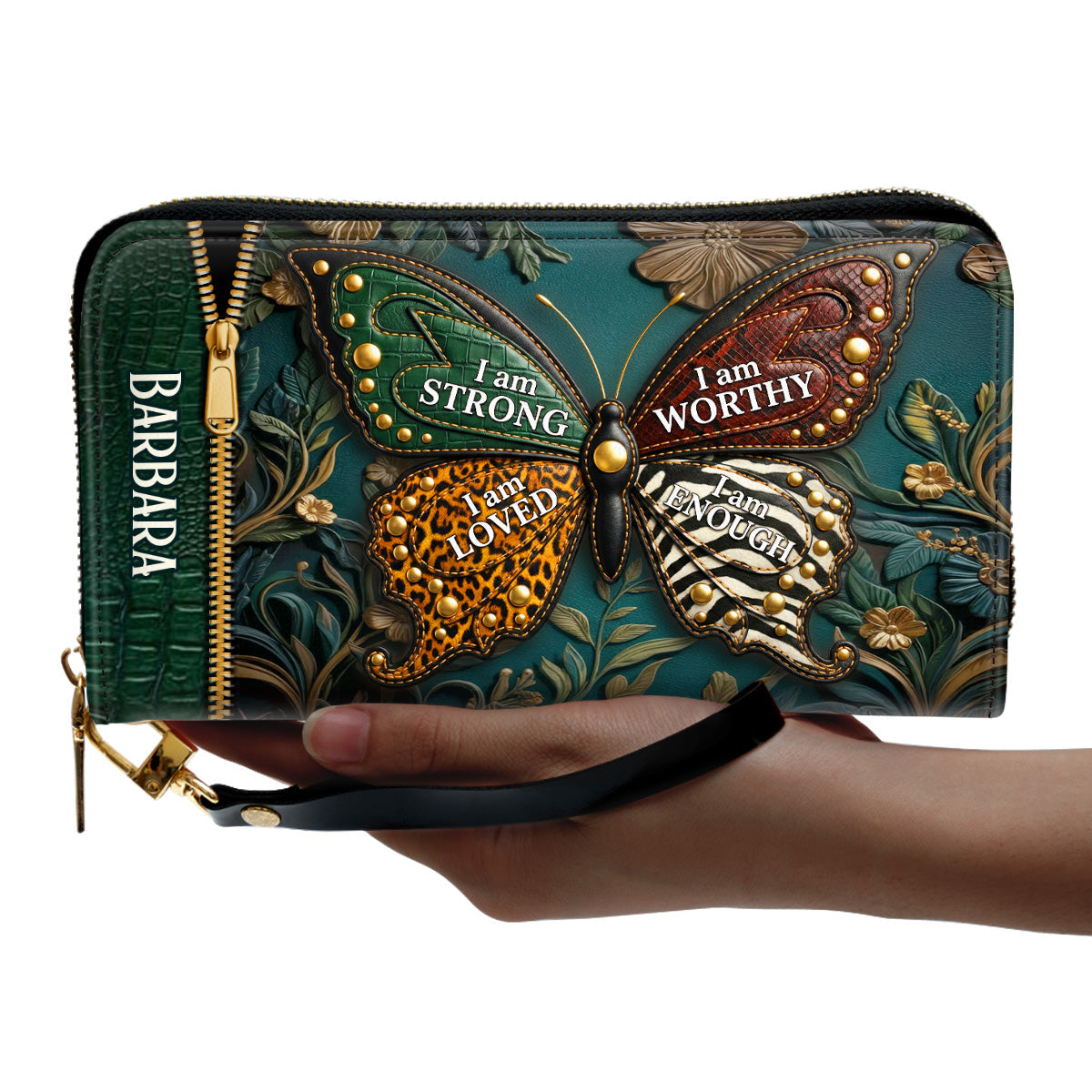 Floral Butterfly Empowerment - Personalized Leather Long Wallet - Gift For Mom, Grandma