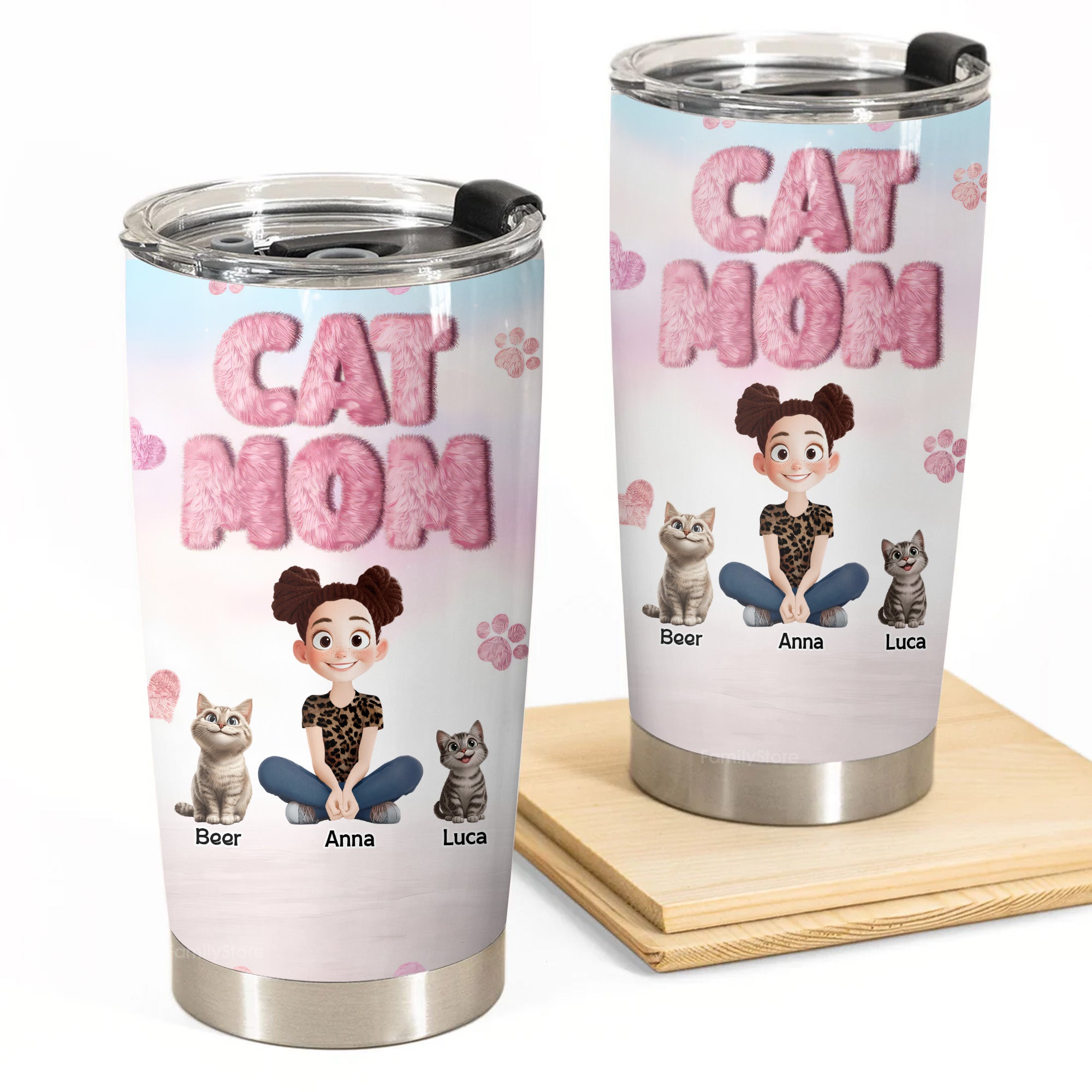 Fluffy Cat Mom 3D Inflated Effect Cartoon Cat - Personalized Tumbler Cup - Gift for Pet Owners, Pet Lovers, Cat Mom | CLP15 NH96
