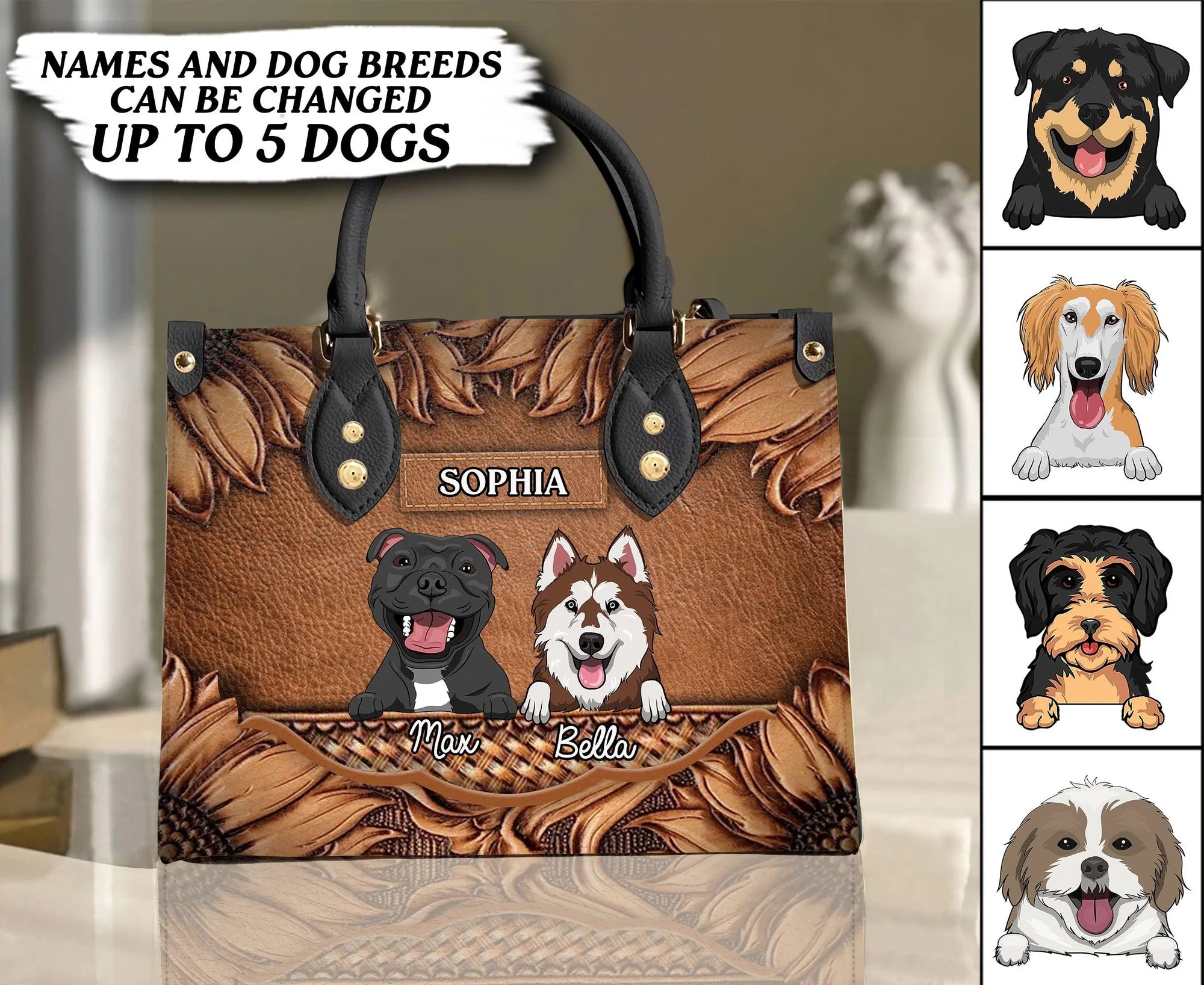 Furry Friends Are The Ultimate Healers Brown Flowers - Personalized Leather Handbag - Gift for Dog Lovers, Dog Mom | CLP14 NH96