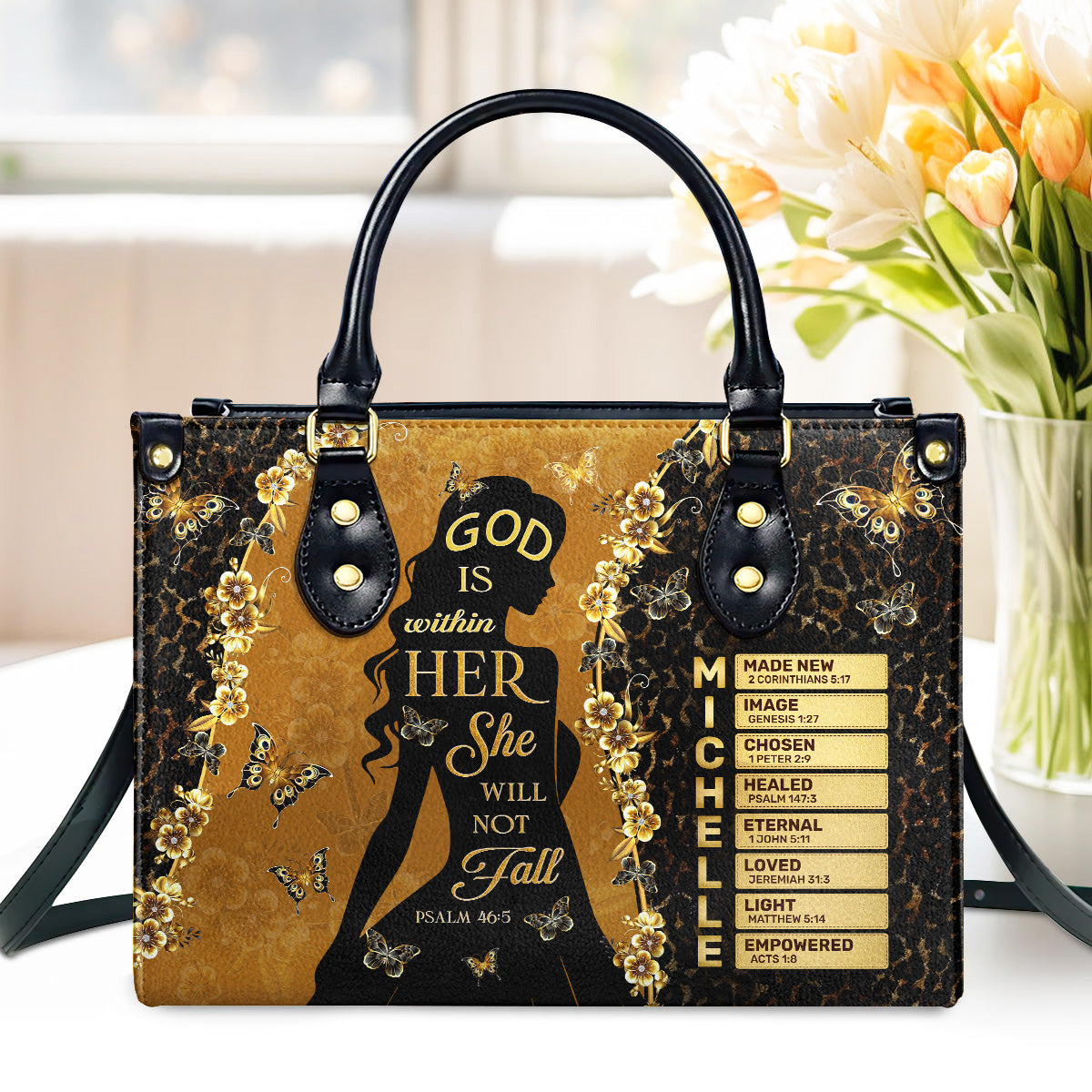 God Is Within Her She Will Not Fall - Personalized Leather Bag TD118