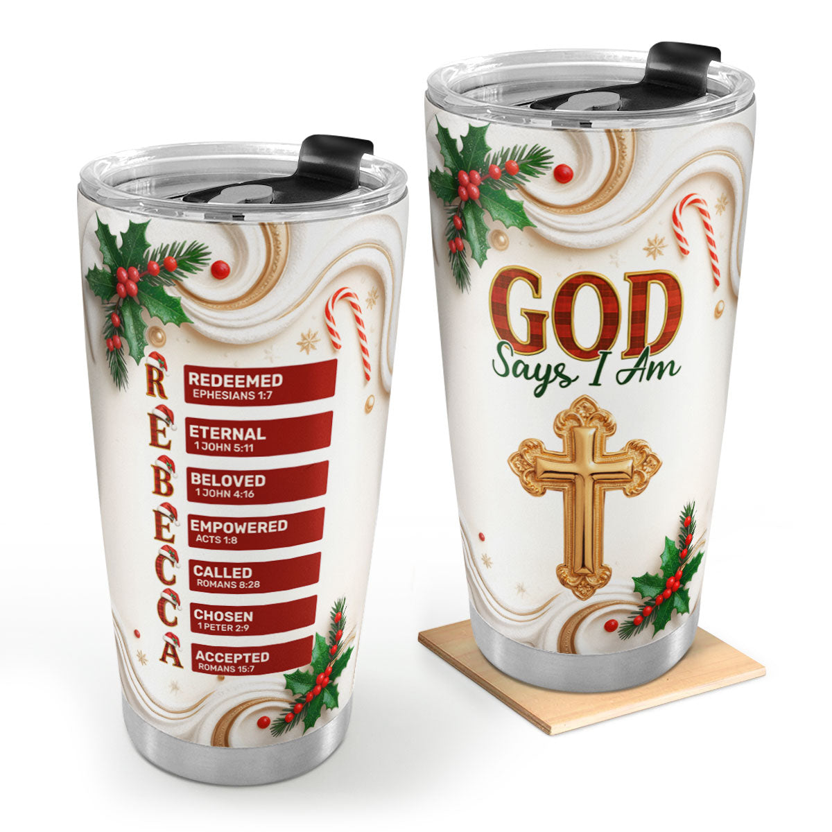 God Says I Am Christmas Red Plaid - Personalized Stainless Steel Tumbler HL128
