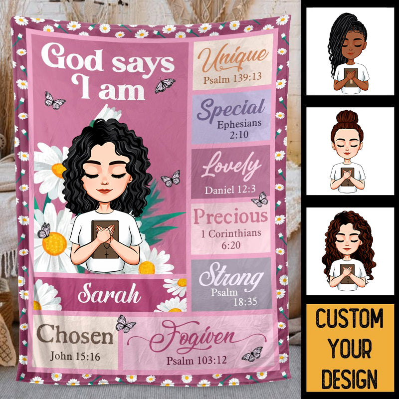 God Says I Am Daisy (Chibi) - Personalized Blanket - Gift For Her | CLGOD05 HL128