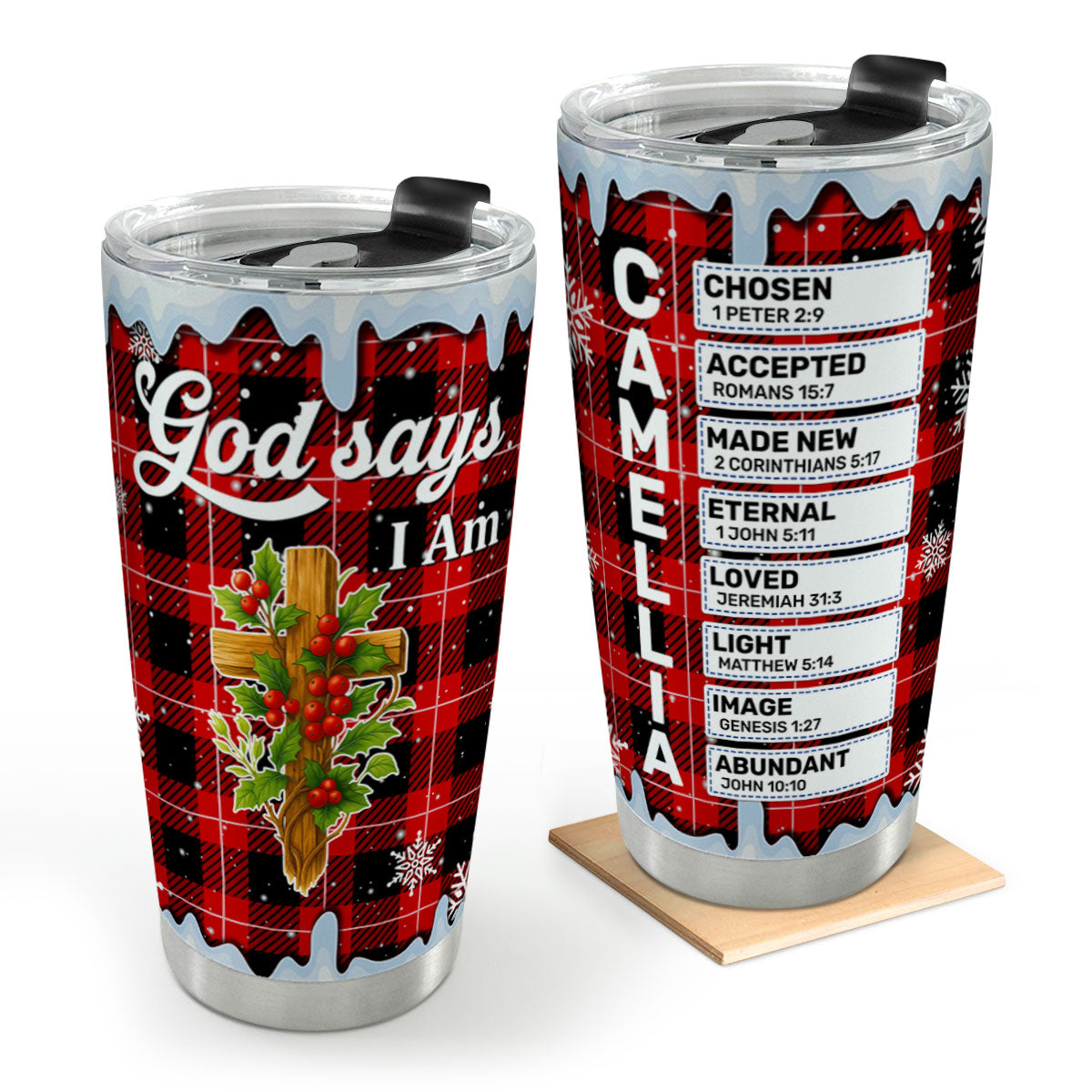 God Says I Am - Personalized Stainless Steel Tumbler - Gift For Christmas | HL128
