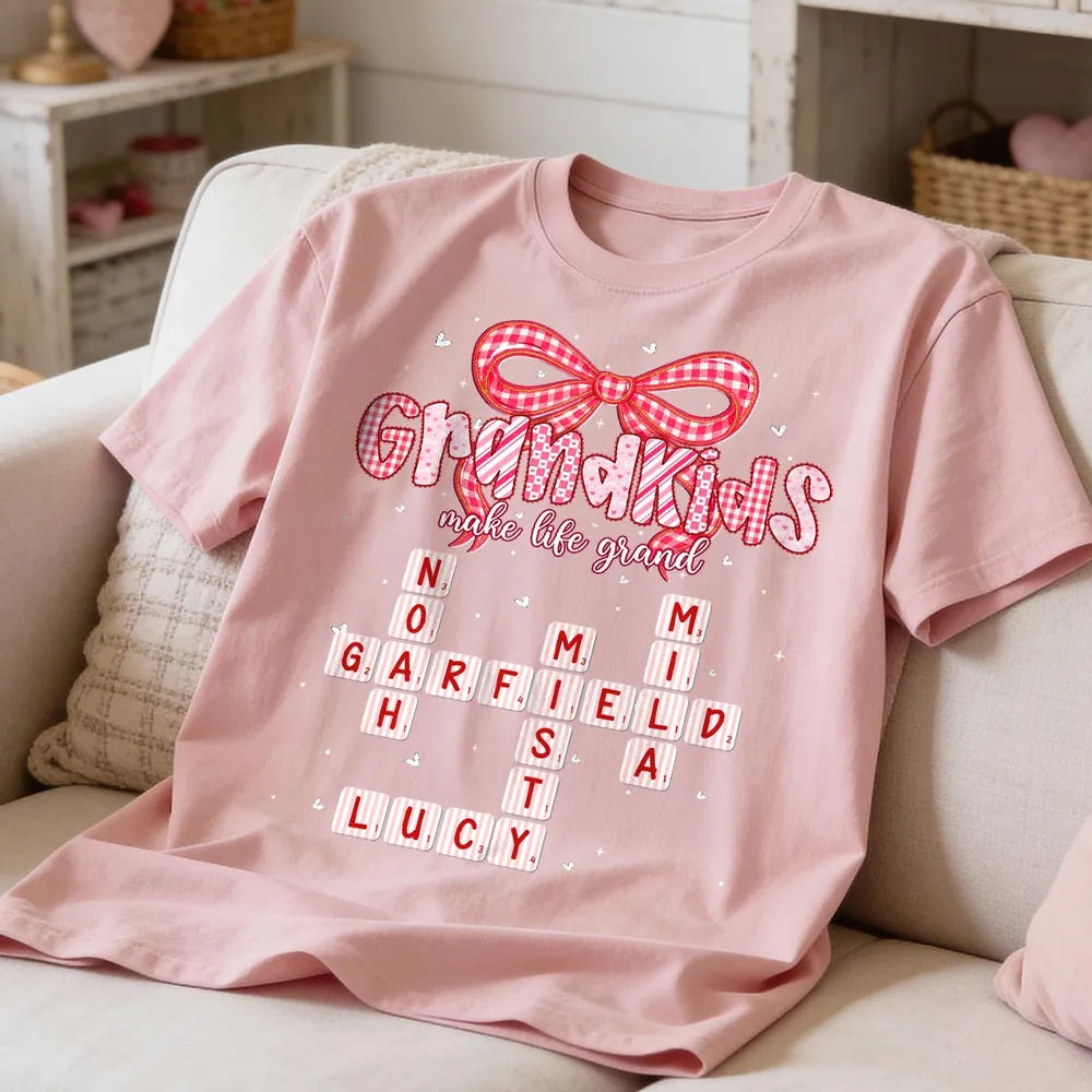 Grandkids Make Life Grand Preppy Pattern Crossword Puzzle Art - Personalized Shirt - Gift For Grandma | HN02