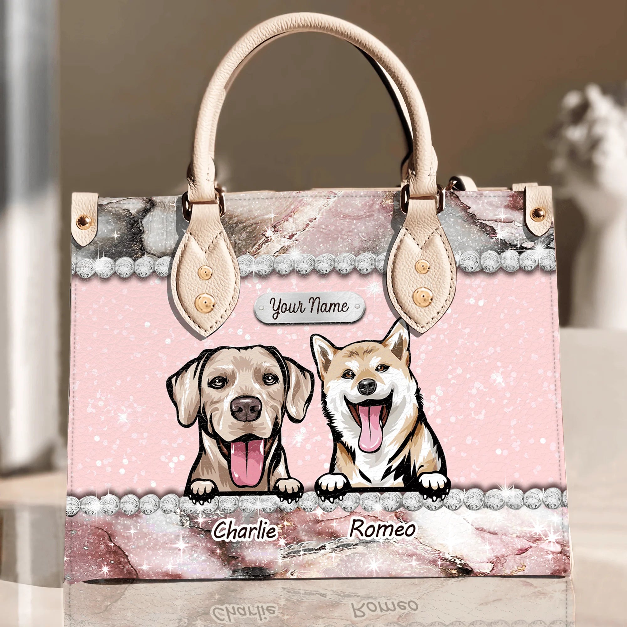 • Happiness Is A Warm Puppy Rose Marble - Personalized Leather Handbag - Gift for Dog Lovers, Dog Mom | CLP13 NH96