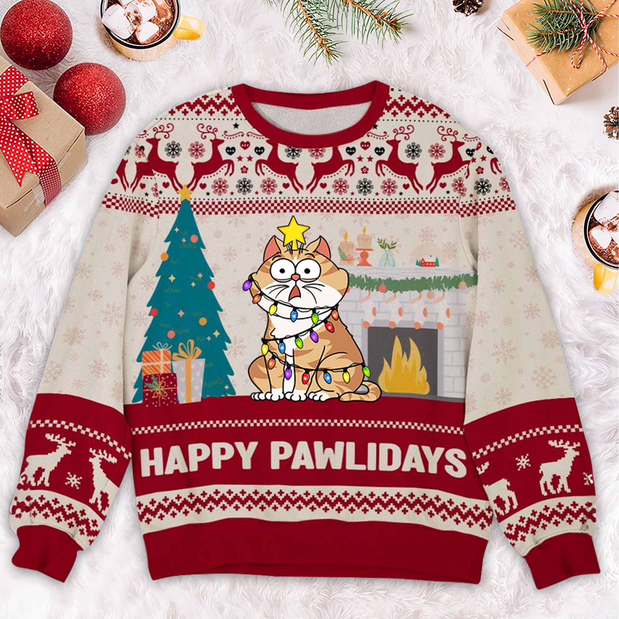 Happy Pawlidays - Gift For Cat Lover, Cat Mom, Cat Dad - Personalized Ugly Sweatshirt - CLP03 NH96
