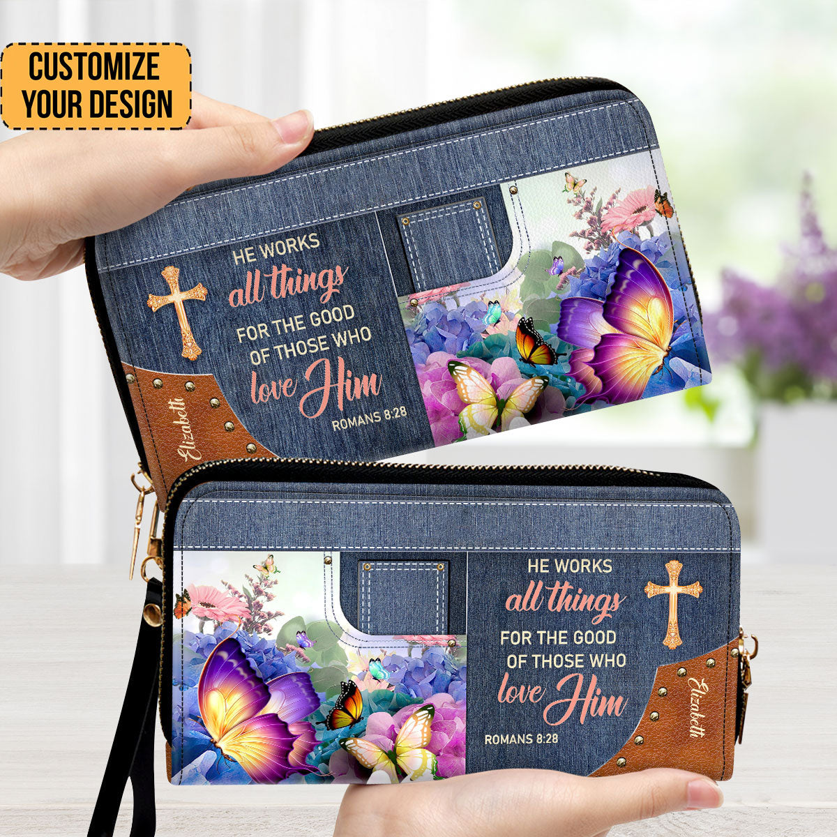 He Works All Things For The Good Of Those Who Love Him - Personalized Leather Long Wallets - AT4080712