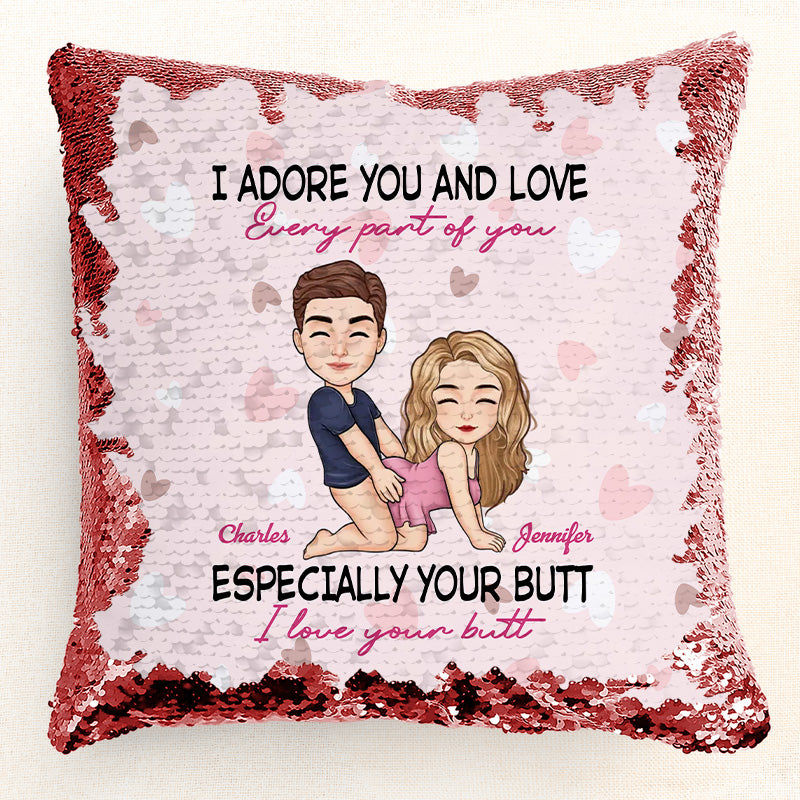 I Adore You And Love Every Part Of You - Personalized Sequin Pillow - Gift For Couple, Husband Wife, Anniversary Gift | GR10 - NA94