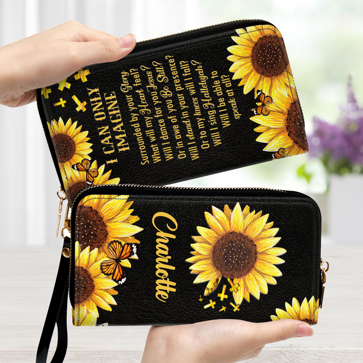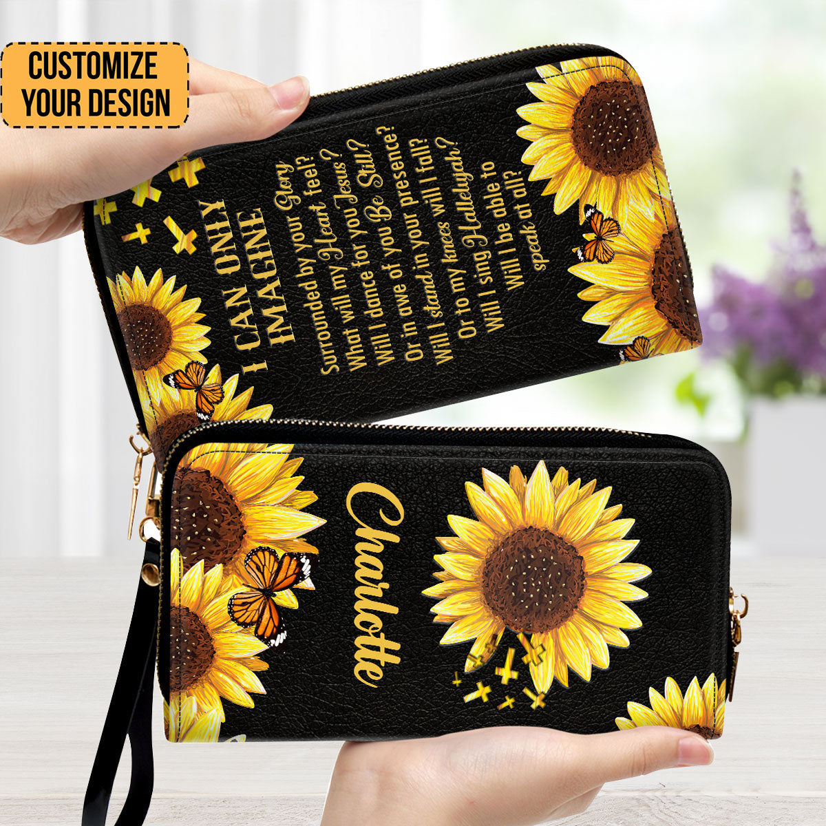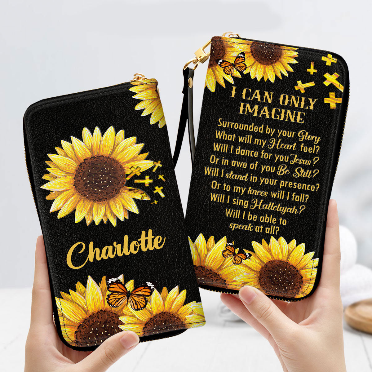 I Can Only Imagine Sunflower And Cross - Personalized Leather Long Wallets - AT4080914