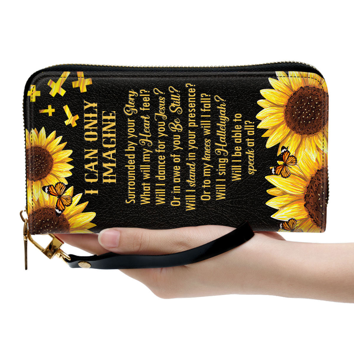 • I Can Only Imagine Sunflower And Cross - Personalized Leather Long Wallets - AT4080914