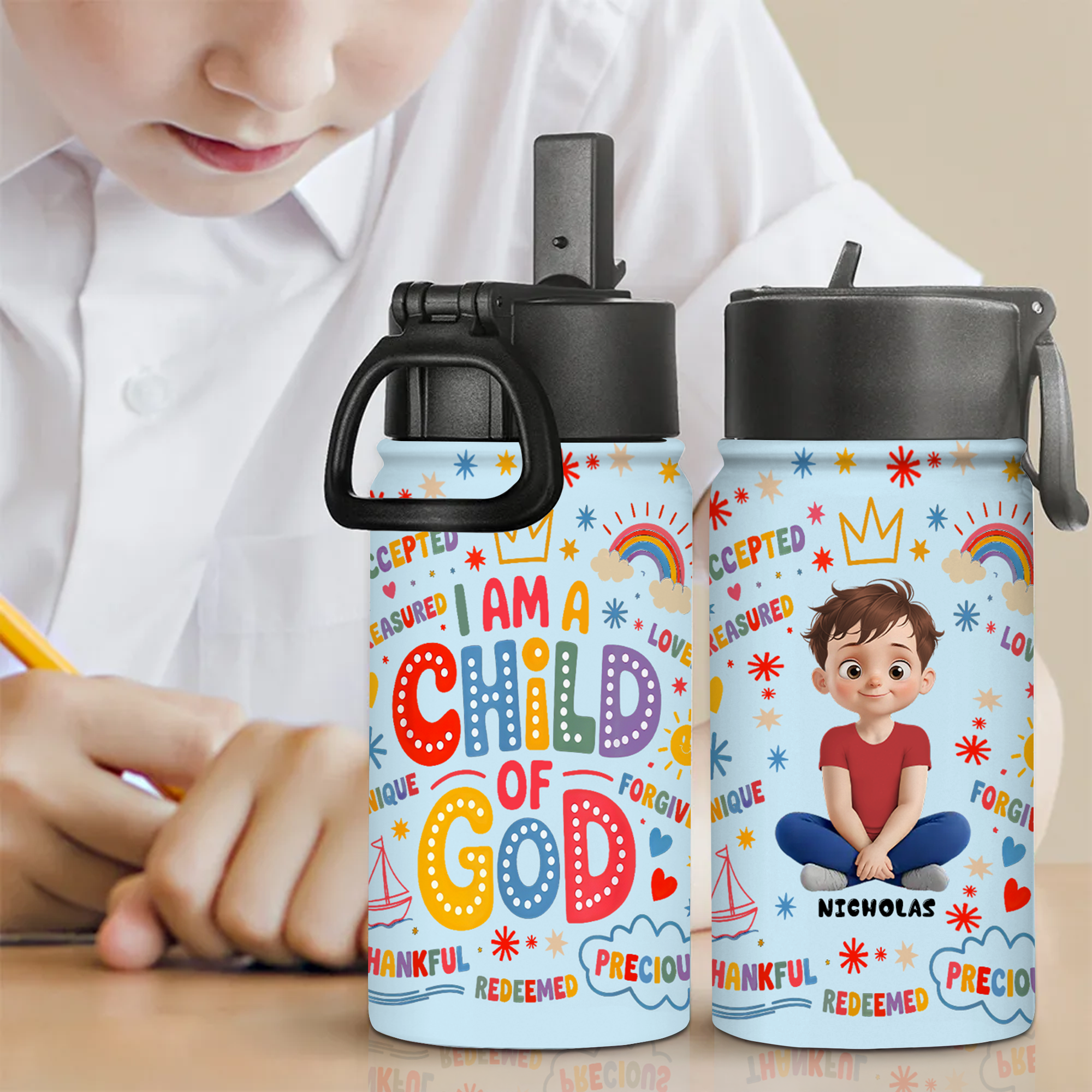 I'm A Child Of God - Personalized Kid Water Bottle - Back To School Christian Kids Gift | GR25 TD118
