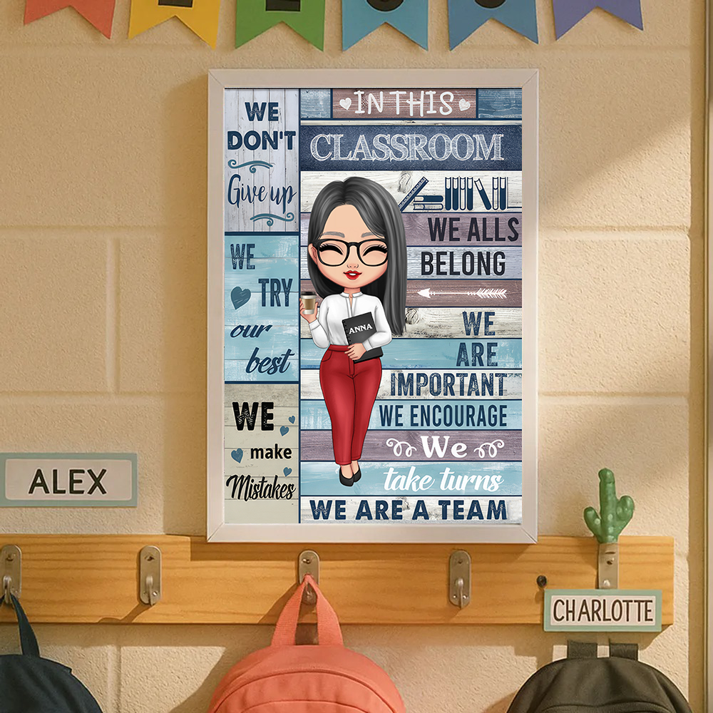 In This Classroom We All Belong Teacher - Personalized Custom Poster, Back to School for Teacher Classroom Decor | CLTC01