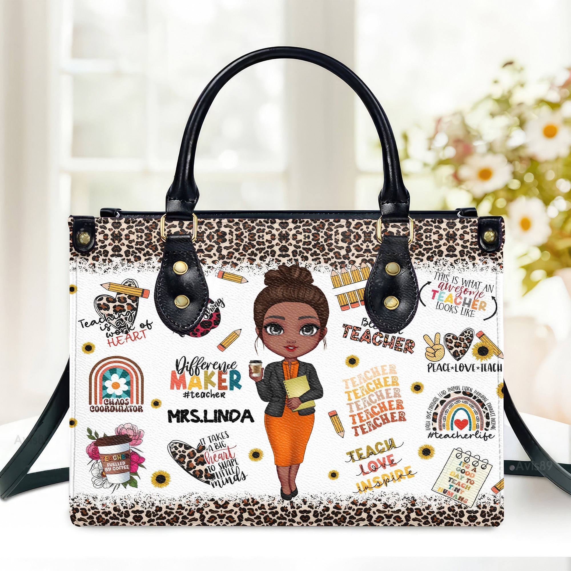 Inspirational Quote & Cute Teacher Design - Personalized Leather Handbag - Gift For Teacher's Day | CLTC01 HD95