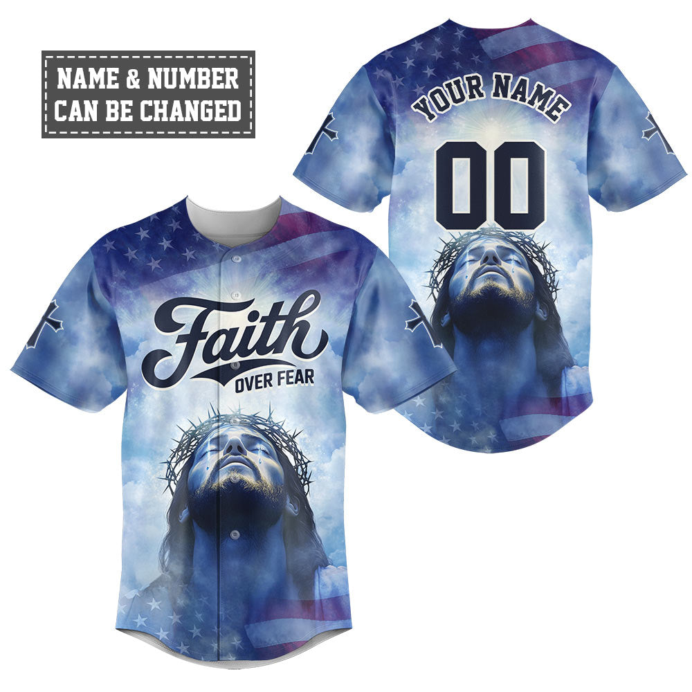 Jesus Faith Over Fear Baseball Jersey - Christant Gift For Him